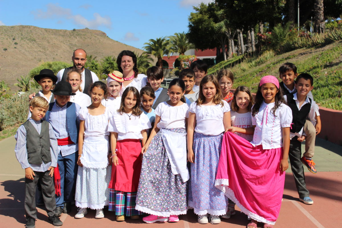 Todos los alumnos del colegio, desde el Vorschule a la clase 10, ataviados con el traje típico canario, disfrutamos de un día maravilloso, compartimos unas horas estupendas con nuestros compañeros y profesores y adquirimos nuevos conocimientos sobre nuestras tradiciones.