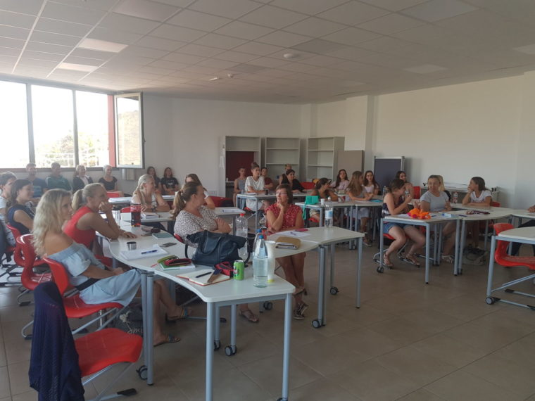 Como parte de la última jornada pedagógica en la Escuela Infantil del Colegio Alemán de Las Palmas de Gran Canaria recibimos la visita del Prof. Kay González. El experto en bilingüismo compartió sus hallazgos con todo el equipo de Infantil. Un tema central y muy discutido de la jornada formativa fue cómo crear condiciones propicias para la adquisición de dos idiomas. Esta cuestión también fue abordada en un pequeño taller que el equipo de DaF llevó a cabo para los profesores en prácticas y voluntarios de Infantil un mes más tarde. Así mismo, se formó a los nuevos educadores en la aplicación del programa de inmersión lingüística «Hocus & Lotus», que se lleva utilizando en Infantil desde hace tres años.