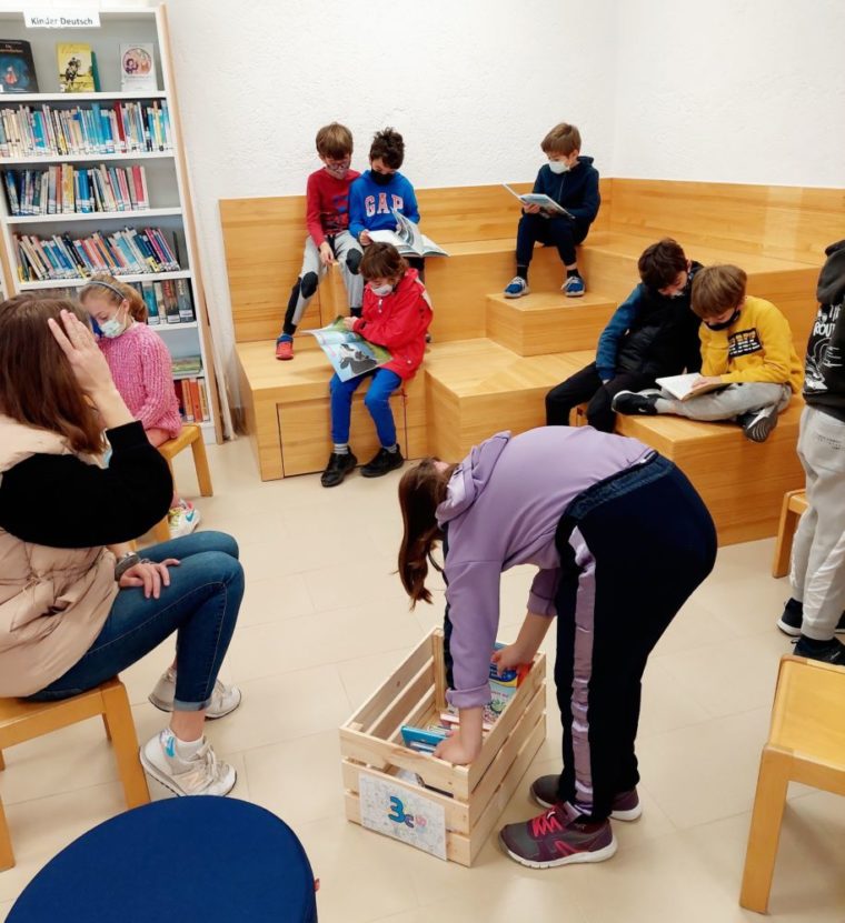 La biblioteca del colegio aún no pudo abrir debido a la situación de pandemia. Sin embargo, nos gustaría ofrecer a los niños material de lectura en alemán para leer el alemán y promocionar de intereses, también para variar la clase y la vigilancia. Desde el inicio de clases después de las vacaciones de carnaval, hemos podido recibir a nuestros alumnos de primaria en su clase de burbuja. Desafortunadamente, todavía no está permitido sacar libros de los estantes, ya que las normativas actuales prevén una cuarentena de todos los artículos durante 48-72 horas. Por eso hemos creado una selección de libros para cada clase para que los niños puedan venir a la biblioteca durante la clase con su profe y durante la permanencia. Junto con nuestros voluntarios (FSJ), hemos preparado una caja para cada clase de primaria con aproximadamente 18-22 libros y revistas, que deberían invitarlo a navegar y leer. Los niños encontrarán cómics divertidos, libros de referencia interesantes, libros de cuentos, cuentos para niños y niñas y mucho más. Los libros están seleccionados de tal manera que atraen tanto a lectores frecuentes como a aquellos que aún tienen dificultades para leer. Esperamos que la oferta acerque a los niños a la magia de una biblioteca. Con proyectos como la lectura en voz alta en un hermoso ambiente, etc., queremos inspirar a los niños a leer e invitarlos a escuchar y soñar en el mundo de los libros. Nuestros alumnos con menos acceso a libros infantiles alemanes ahora tienen otra vez la oportunidad de prestar libros que les interesen.