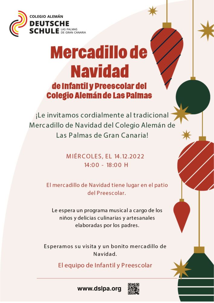 Les invitamos cordialmente al tradicional Mercadillo de Navidad del Colegio Alemán de Las Palmas de Gran Canaria, el miércoles 14 de diciembre a las 14 horas. El mercadillo de Navidad tiene lugar en el patio del Preescolar.