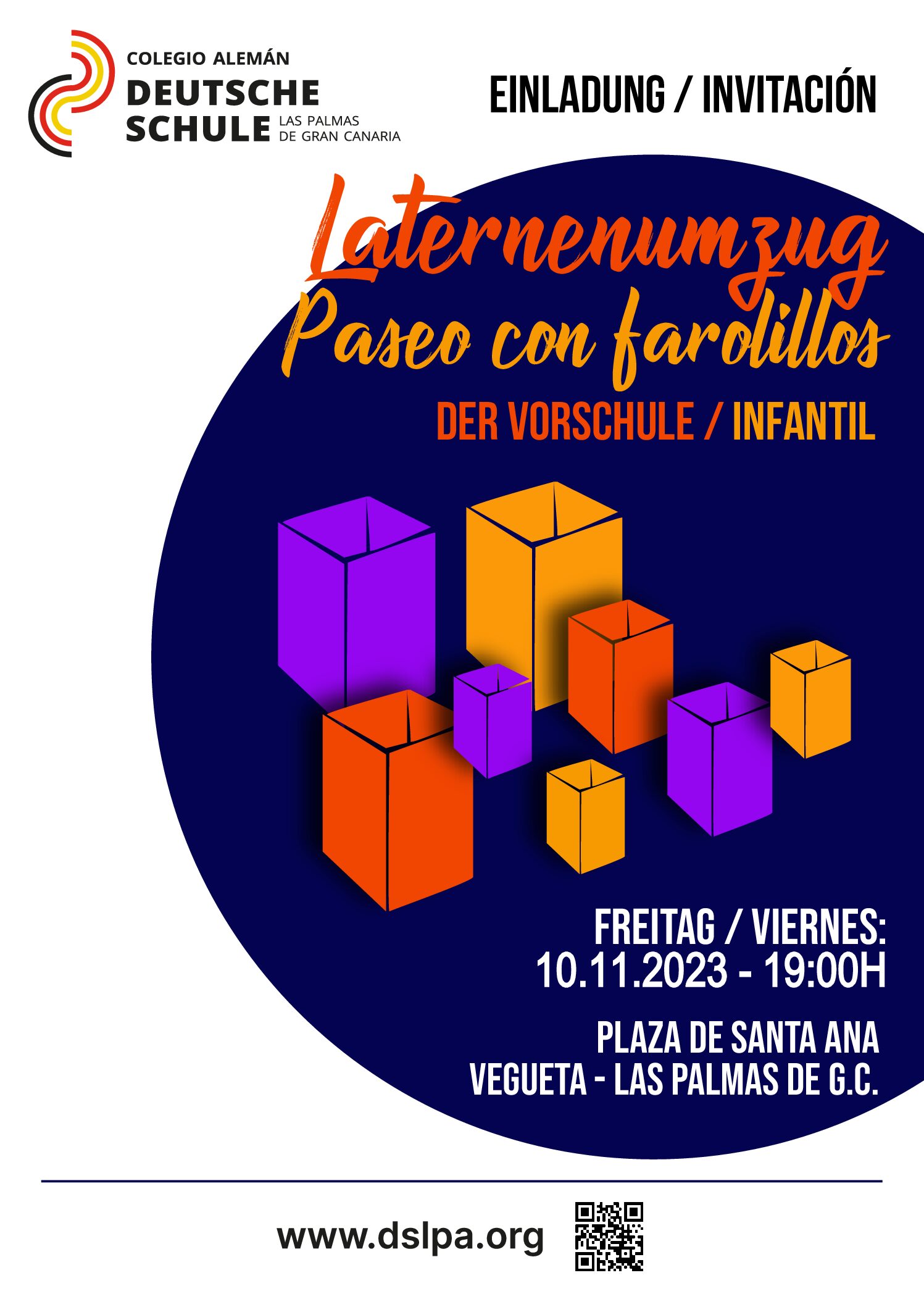 Queridos niños/as, familias y amigos/as de Infantil y Preescolar del DSLPA, Nos gustaría invitarles a nuestro tradicional paseo de farolillos el viernes 10 de noviembre de 2023 a las 19:00 .... seguir ... 08.11.2023