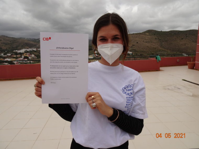 También hubo diversión para ambas clases al participar en un concurso sobre tecnologías disruptivas. La puntuación más alta la obtuvo nuestra alumna Olga Artiles, que recibió un premio en metálico por 50 euros y un certificado. ¡Enhorabuena a Olga!